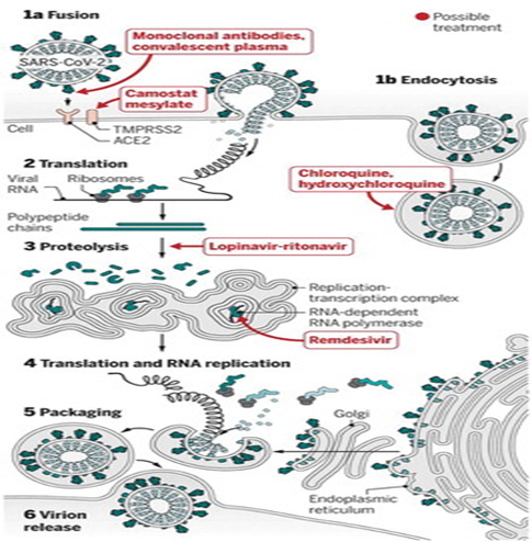 Figure 2. Mode of Action and Site-Directed Therapies to Treat COVID-19 [17]