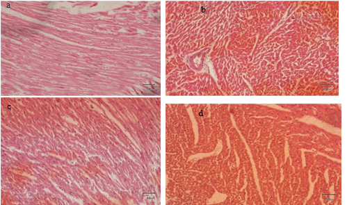 Figure 4. Histological Examination of Heart tissues of (a) Control group (Go) (b) Experimental group (G1) (c) Experimental group (G2) (d) Experimental group (G3)