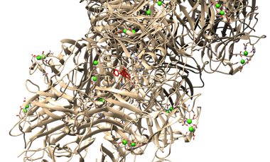 Figure 3. Active Site of CRP Shown with Red Pocket Region. Binding Pocket Area = 24263.303 Ų; Volume = 53142.377 ų.