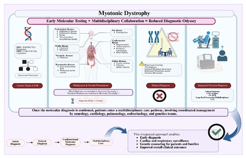 Conclusion. Overlapping clinical features, inconsistent levels of physician awareness, and unequal access to molecular diagnostics within various healthcare settings are all factors that contribute to the persistent difficulty in diagnosing both DM1 and DM2. As such, it is critical to develop strong multidisciplinary collaboration, enhance the infrastructure for molecular diagnostics, and establish global harmonized standards for the diagnosis of DM in order to ensure that patients can be accurately identified promptly.