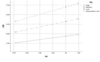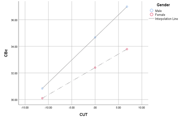 Table 9 illustrates the moderation analysis, with CU traits as a predictor, cyber bullying as the dependent variable, and gender as a moderator. A significant main effect was apparent between CU traits and cyber bullying (p <.001). Similarly, significant main effect was apparent between gender and cyberbullying (p <.001). Additionally, a significant interaction effect by gender on CU traits and cyberbullying, b= .13, p= <.001 was evident thereby, confirming the moderating role of gender in relationship between CU traits and cyberbullying. It was found that gender emphasizes a greater effect of callous unemotional tendencies on cyberbullying.