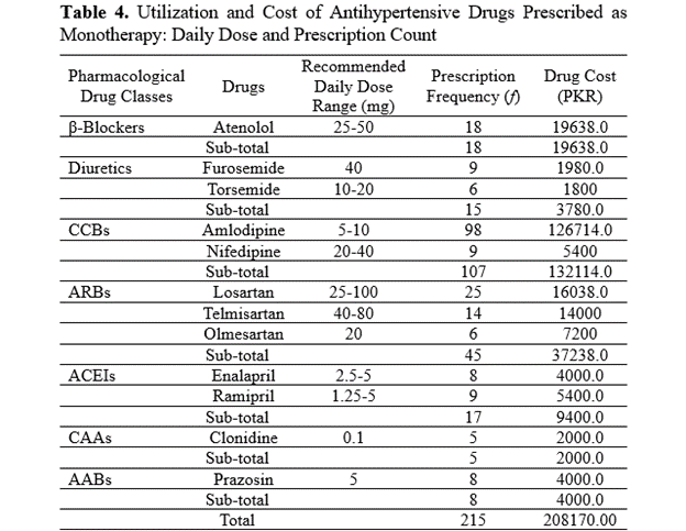 Cost-Effectiveness Analysis of Antihypertensive Medications Prescribed to Primary Hypertension Patients at District Headquarters Hospital, Kohat