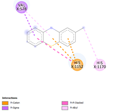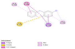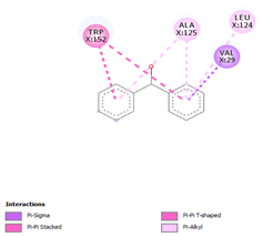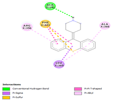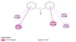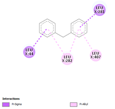 The HEPIs were all docked to various EPs in order to determine the binding energy and the inhibitory constant (Ki). Due to docking, it was discovered that all HEPIs exhibited varied behaviour when interacting with various EP proteins. Tables 3-7 exhibit the binding affinities (ranging between -3.0kcal/mol and -10.8kcal/mol).
