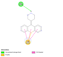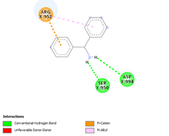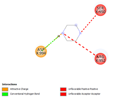 3.6.5. Toxicity Analysis. Toxicity analysis was performed in terms of lethality and genotoxicity. The in-silico analysis was performed and the results were obtained. The lethal concentration (LC50) shows the concentration required to cause death in 50% of Fathead minnow. The value of LC50 is predicted as logLC50. When the value of LC50 is less than 0.5 mm, the compound is considered as high acute toxic [31]. The logLC50 value for Comp-1 was 0.00624363 mm. For Comp-2 it was 0.00194877, for Comp-3 the value was 0.00116833, for Comp-4 it was 0.0149294, for Comp-5 it was 0.00400254, for Comp-6 it was 0.00571874, for Comp-7 the value was 0.0271163, for Comp-8 the value was 0.012434, for Comp-9 the value was 0.0308489, for Comp-10 it was 0.0771713, and the values for Comp-11 and Comp-12 were 0.0430541 and 0.0799005, respectively. The hERG gene regulates the potassium channel and its inhibition leads to the development of acquiring QT syndrome, leading to a heart rhythm disorder. hERG inhibition for all the compounds was at medium risk, except Comp-11. However, the hERG inhibition for Comp-11 was at low risk. The mutagenic potential of the drug can be assessed by using the Ames test. The test was carried out by using PreADMET and the results showed that only Comp-6 and Comp-8 were non-mutagen, while all others were mutagen.