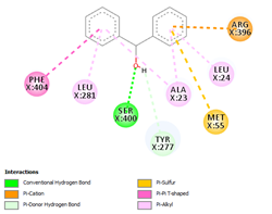 2.2 ADMET and Prediction of Drug LikenessBy using PreADMET, the absorption, distribution, metabolism, excretion, and toxicity (ADMET) of all HEPIs were calculated [29]. The program also aided in predicting the drug-likeness of the given HEPIs. These predictions were prepared by using the file of their molecular structure. Using the pharmaceutically relevant properties associated with the ligand molecules and significant descriptors, the pharmacokinetics and pharmacological properties of the HEPIs were analyzed.