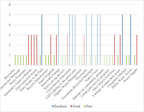 | Provision of Renewable Energy for Urban Lighting and Furniture | Yes or No | Provision of solar lighting around the park | Abundant | Average | Scarce | Physical survey of the site | |