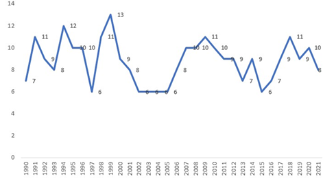8.1. Study LimitationsDespite the profound significance of this research endeavor, a series of limitations merits elucidation. First and foremost, bibliometric analysis focuses on quantitative metrics, and overlooks qualitative depth and the impact of individual contribution of a datapoint. The exclusive data source of OJIS may not fully represent the diversity and complexity of Islamic studies, nevertheless it is a good proxy of the field’s diversity and complexity. The exclusion of Arabic language limits the scope of the study, especially the aspects that have cultural underpinnings, though the researchers in English language cannot undermine the significance of the results. Additionally, the analysis of books and monographs is limited to those reviewed by OJIS, similar analysis shall be undertaken for the publications of the prominent multilateral institutions such as Islamic Development Bank of Jeddah. Finally, it is prudent to note that the findings of this research predominantly emanate from the analysis of a single journal, OJIS, thereby imposing restrictions on the degree to which these findings can be extrapolated to other journals within the domain of Islamic Studies. Variations in publication patterns, author demographics, and citation practices among different journals might yield outcomes that are not universally applicable. Hence, an awareness of these limitations is indispensable when interpreting the results and considering their broader implications.