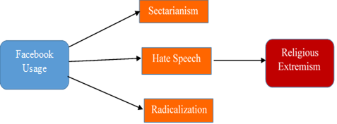 The study employs a quantitative approach, while combining quantitative data analysis with structural equation modeling to test the given hypotheses. The findings show a significant and positive relationship between Facebook usage and religious extremism among Facebook users.
