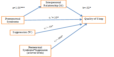 Note. Direct and indirect effect of Premenstrual Syndrome, Interpersonal Relationship and interaction effect of Premenstrual Syndrome and Emotional Regulation (Suppression) on Quality of Sleep.