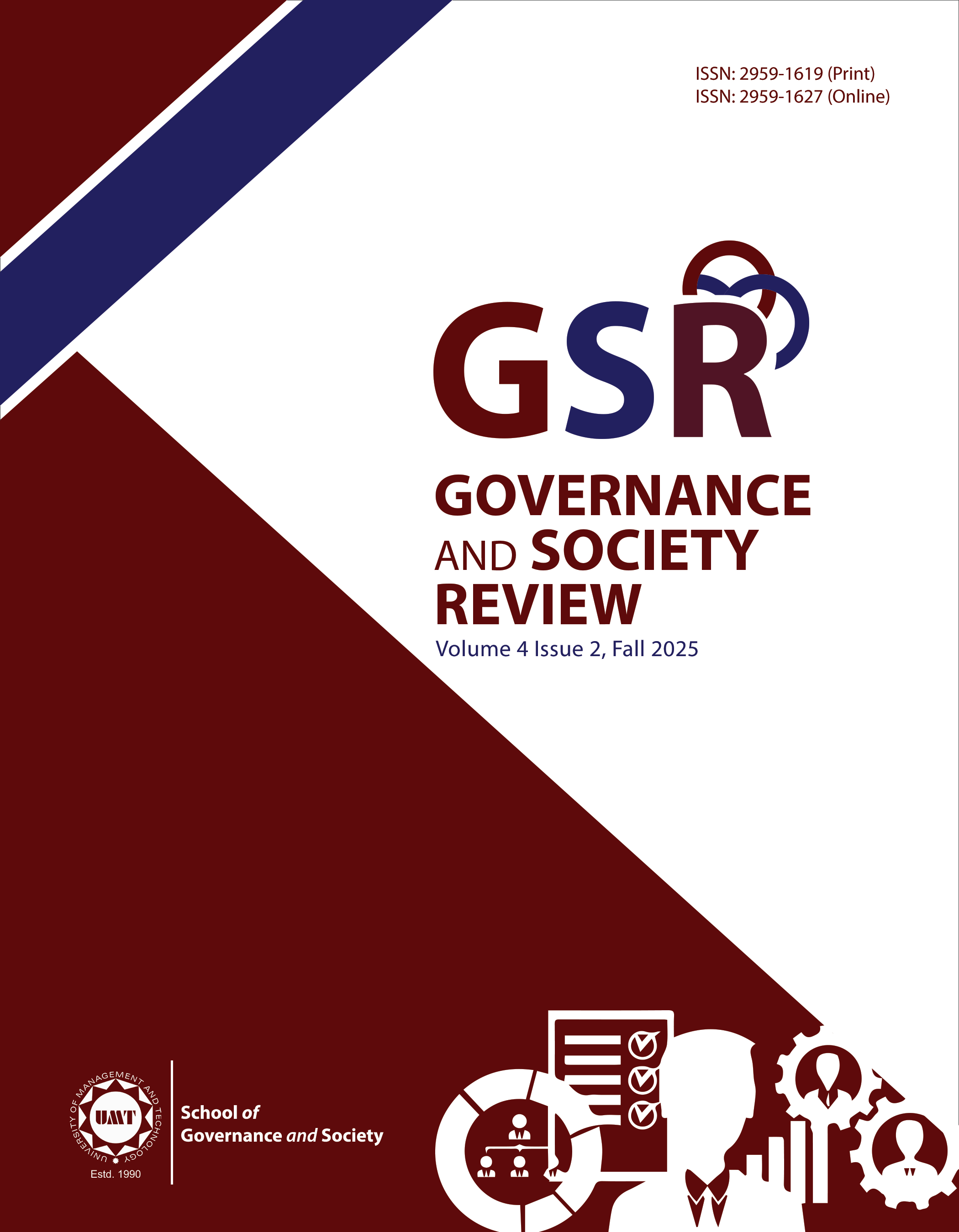 Governance and Society Review (GSR) by School of Governance and Society, University of Management and Technology (UMT) is licensed under a Creative Commons Attribution 4.0 International License.