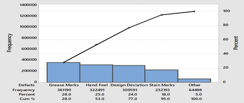 FIGURE 9. Pareto chart for the defects occurred during re-finishing process
