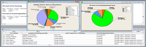 Six Sigma Technique has taken into action in order to minimize the overprocessing and reprocessing. Six sigma tools help in lowering the defects in Finishing department which was highlighted, and by encountering these defects to get better results ultimately reducing the reprocessing.