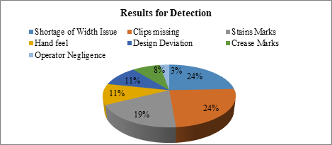 Most of the issues are generating due to width shortage and operator negligence. Due to crease marks and hand feel most of the issues are generating. The major defects observed in the finishing process are varied in nature. Shortage of width often occurs due to frequent stoppages between mercerization and drying, which produce non-uniform fabric widths. Clips missing is another common defect, usually arising from operator negligence, high machine speeds, or poor maintenance and greasing of clips. When clips fail to hold the fabric properly, the heat-setting process causes burns or the appearance of yellow strip shades. Similarly, machine-related issues are significant, since preventive maintenance is often neglected. Problems such as faulty burners, improper temperature settings, and irregular machine speeds lead to friction marks, jerks, and yellow stain formation. Operator negligence also plays a role, with machines frequently being run above or below standard speeds, or on bypass modes that skip necessary processing steps. Crease marks are generated when the batcher folds fabric abruptly, or during mercerization when damp fabric runs at high speed in a twisted form, resulting in visible creases. A further issue is the hand feel of the fabric, which deteriorates when operators fail to perform timely checks during folding operations, reflecting a lack of supervision. Stain marks are another persistent defect, caused by a variety of factors including dye droppings, rust, oil or zinc particles, and bubble formation in the troughs or chemical tanks of finishing machines. They can also originate in the pretreatment stage, while Sanforizer belt marks and improper padder cleaning exacerbate the issue. Other recurring problems include mixed fabric quality, rassa, selvedge cuts, and inadequate cleaning of rolls, troughs, and chemical tanks between shade changes, along with incorrect temperature settings, all of which compromise fabric quality.