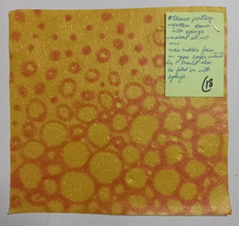 Using 2 colors of paper to create a pattern on one side of sheet using a syringe. |